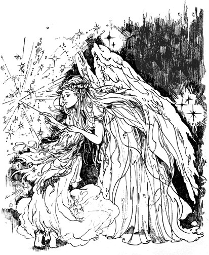 ロミが頷くとアフロディテは右手にたずさえた杖を軽くひとふりしました。その先から真珠のような球状の光がいくつもあふれ出て、ロミの全身を包み込みました。ロミは自分の体が変わってゆくのを感じました。短かった髪がふわふわ伸び始め、ぺったんこだった胸もふくらみました。ロミは少しだけ怖くなり、あの日青年からもらった手の中のルビーをぎゅっと握りしめました。