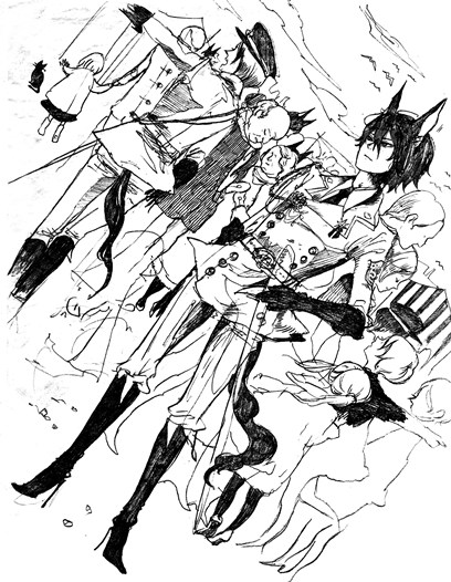 ロミは最初、青年の姿を三階の窓から眺めていました。サマンサ公爵に拾われた翌朝のことでした。慣れない着物とやわらかすぎるベッドでは寝付けず、窓辺に引き寄せたソファの上で寝返りを打った時、ロミは青年の姿をはっきりと見たのです。それ以来ロミの心は青年のことでいっぱいでした。正門が開く音に耳を澄ませては、青年が手紙を運んできたんじゃなかろうかと窓辺に駆け寄り、人違いだと分かると耳を伏せてまた退屈な本に目を落とすという繰り返しが何日も続きました。